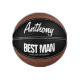 Best Man mini basketball proposal gift from groom. Personalised sports gift for groomsmen. Black and white typography design with custom name and date of marriage.