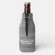 Get the wedding celebration started in style with a funny personalised groomsman proposal bottle cooler. Design features a rustic grey faux wood background, stylish modern typography names, and a customisable request reading "Will you be my groomsman? Chug to accept". All text is simple to customise or delete. These unique and original beer bottle coolers make elegant bachelor party favours from the groom to his groomsmen friends. Cheers Bro!