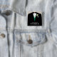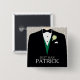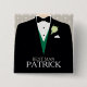 Best man tuxedo buttonhole green rose name badge. Smartly dressed best man in tuxedo and black bow tie graphic wedding name badge. Reads Best man Patrick. Personalize with your own name and title. A great personalized gift idea for male bonding on bucks nights / stag nights, wedding rehearsals or as a wedding favor. Art and design by Sarah Trett for www.mylittleedenweddings.com