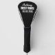 Best Man wedding favour golf driver head cover for groomsmen. Personalised thank you and proposal gifts from groom to groomsman. Great for asking golfing friends and golfers in your family. Add your own name and date of marriage. Black and white typography design.