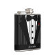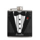 A perfect flask for a perfect wedding day! Purchase a personalised "Black and Grey Pin Striped Tuxedo Flask" for each groomsman in your wedding! A wonderful way to say thank you to your groomsmen or best man! Don't forget one for the groom! A white tuxedo version is available! This classy hip flask shows a black tuxedo with bow tie and maroon rosebud boutonniere on a black and grey pinstriped background. Flasks are available for the bride and her bridesmaids too! To see more great products-Please visit my store "The Hungarican Princess" at www.zazzle.com/hungaricanprincess*. Look in my "Hip Flasks" department category.