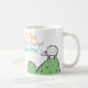 Mug for the best Maths Teacher. Funny cartoon of a sheep on the top of a hill. The sheep says "Best Baaa None". Design repeats on both sides.