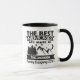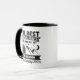 Create a unique customised mug for your next family camping reunion, featuring the quote "The best memories are made at" in black lettering above a mountains and pines silhouette illustration. This mug is customisable by adding your family name and text of your choice just under the illustration.