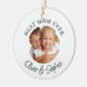 This modern ceramic ornament says "Best Mom Ever" and is easily customizable with your name and photo.