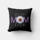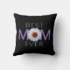 Best Mom Ever With Daisy Image Print Pillow (purple version 2). The cute design shows "MOM" with a stylized image of a daisy positioned as the "O". Graphic leaves are overlaid on the two "M"s. Makes the perfect gift for your much loved mama for Mother's Day, for her birthday, or for Christmas. Thank you for the support and visiting my store - UniquelyDistinct. Feel free to transfer this design on other Zazzle products.