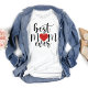 Celebrate your mum with this fun t-shirt that says "Best Mum Ever" in a stylish decorative script with a vibrant red heart in the middle.