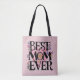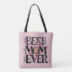 Make Mum's day with our chic tote bags boasting the phrase Best Mum Ever in stylish typography, surrounded by modern cute flowers and a pink heart background. These trendy totes are perfect for Mother's Day gifting, offering both fashion-forward design and practicality.