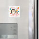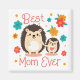 Adorable magnet for a mother's day treat featuring a cute illustration of a mummy hedgehog holding the hand of her baby hedgehog. The little hedgehog is holding a pink love heart. Both hedgehogs have dark brown spines and a tan body, each have rosy cheeks, shiny eyes and a little smile. Floating around above the cute animals are colourful flowers in blue, yellow and red. Fun pink font above and below the illustration reads 'Best Mum Ever',