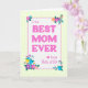 A pretty Mother's Day card for the BEST MOM EVER. The design has a yellow check gingham border surrounding the words, 'To the BEST MOM EVER from Both of Us', in magenta pink lettering on a lightly textured white background. There are bright clusters of multi-coloured flowers in the corners and a small magenta pink heart. The inside message can be customised or deleted if you wish.