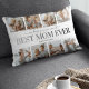 Personalised pillow mother's day gift featuring a 8 photo collage template of the kids, the saying 'we love you so much' in a elegant script font, 'best mum ever' in a black/grey gradient font, and the childrens names.