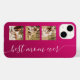 Best Mum Ever Photo Picture Elegant Script Pink iPhone 14 Smart Phone Cases features a modern and trendy simple and stylish design with the text "best mum ever" in elegant hand written calligraphy script typography on a metallic pink shimmer background. Add three of your favourite photos to personalise. Designed by ©Evco Studio www.zazzle.com/store/evcostudio