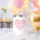 Celebrate your favourite mother with this adorable wine tumbler that features a big pink heart with the words 'Best Mum Ever' in a white decorative script with floral and diamond accents.