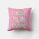 Celebrate Mother's Day with this cute pink cushion that features whimsical text that reads 'Best Mum Ever.'
