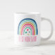 This adorable jumbo rainbow mug with hearts that says, "Best Mum Ever!" is a perfect gift for your mum. It's happy and bright and lovely - just like her! She'll love it and think of you every time she uses it.