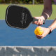 An elegant black pickleball paddle for the best mum ever that features her name monogrammed in a chic white script with swashes.