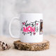 Best Mum ever typography photo mug. Design features single photo and trendy typography script in pink and black. Perfect gift for mum.