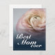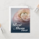 Close-up of pink rose on blue background and Mother's Day greetings. The rest of the card is free to design.