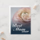 Close-up of pink rose on blue background and Mother's Day greetings. The rest of the card is free to design.