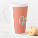 Pretty latte mug design that's perfect for Mother's Day features "Best Mum Ever" word art in tan and pastel blue, on salmon coloured background.