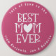 Especially for your Mum (Mum) to proudly wear for Mother's day or her birthday with this fun typographical design, set text Best Mum (Mum) Ever with a heart motif representing the O or U. Easily personalise the editable text curved above and below. White typography on berry pink. Text, background and heart colours can be changed to any colours of your choice via the customise further option.