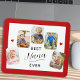 This grandparent desk mat provides space for 5 photos, allowing you to showcase favourite pictures of your grandchildren. The design features a modern style calligraphy that reads: “Best Nana Ever” and is accented with a dark red border. This desk mat is a perfect gift for any grandmother.