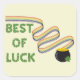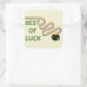 Best of Luck Greeting with Clovers and Rainbow Square Sticker