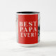 Best Papa Ever 2 Photo Collage Red Mug. Personalise the mug with your photos - insert two photos into the templates. Modern white bold typography Best Papa Ever on a red background - you can change any part of the text if you want. Create your own personal Father`s day, birthday or Christmas gift for the father.