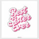 Show your sister just how much she means to you with this bold and heartfelt "Best Sister Ever" design! Whether she's your partner in crime, your biggest supporter, or your built-in best friend, this design says it all.
