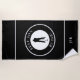 Unique custom beach towel design features a male golfer silhouette set in a black and white shape bordered with curved text "Best Son By Par!" in crisp white font. You will also find a modern template for a monogrammed name, initials or custom text. The background is solid black. If you have any questions regarding this or any of my designs please contact beachpausedesigns@gmail.com. Custom colour requests accepted.