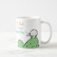 Mug for a Teacher. Funny cartoon of a sheep on the top of a hill. The sheep says "Best Baaa None". Design repeats on both sides.