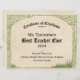 Best Teacher Ever Certificate of Excellence