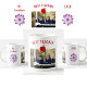 Cute, modern, and elegant teacher appreciation mug with the words "Best Teacher Ever" in all caps in a clean sans serif font + a customisable name and photo, two purple flowers, and an apple.