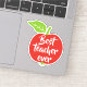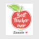Best Teacher Ever white text red apple Sticker. This cute typography design includes a red apple with a green leaf and the text "Best Teacher Ever" in white. Show your favourite teacher your appreciation with this whimsical kiss cut sticker.