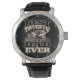 This heartfelt wall clock is the perfect tribute to an exceptional trucker father. Against a black background with a light tan rim, it prominently features a semi-truck graphic and the bold, distressed text "BEST TRUCKIN' DAD EVER". It's an ideal gift to show appreciation for a dad who is both a dedicated trucker and a loving parent. The design tool can also be used to add custom text if you want your name or company on this clock. You can customise the colour of the frame to any colour you desire by going into the design tool.