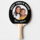 Give the best uncle ever a fun gift with this custom black ping pong paddle featuring a favourite family photo of his nieces and nephews, their names and "Best Uncle Ever" in white typography.