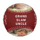 Celebrate a baseball loving uncle with this personalised burgundy red baseball featuring 2 two family photos of his nieces and nephews, "I Love You" or "We Love You," and "Grand Slam Uncle." You can also add names and the year in a handwritten style script as a signature.