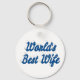Key chain with World's best wife in 3D sea blue text. Round and square key chains available in several sizes.