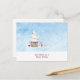 Holiday postcard featuring a gnome house with the words "Best Wishes for a Happy Holiday".