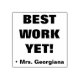 This motivating rubber stamp design features the motivating message "BEST WORK YET!" and a customised tutor name. It could be used by a teacher, educator, or tutor when marking assignments, to acknowledge that the student has done a great job.