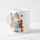 Diese liebevoll gestaltete Tasse zeigt zwei fröhliche Freundinnen auf einer Bank – gemeinsam lachen, quatschen und Kaffee trinken unter herbstlichen Blättern.