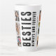 Friendship best friend latte mug featuring 8 photos for you to replace with your own, the saying 'besties always and forever', and your names.