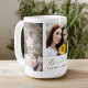 A thoughtful gift for your best friend, this 3-photo mug design has a photo template with 2 vertical photos and 1 square photo in the centre. The text template displays "Besties" in modern script typography and names to personalise with your names. This mug makes a wonderful keepsake conveying the bonds of friendship that are so very special.