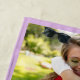 Great gift for your bestie: Custom modern chic lilac beach towel with 3 of your favourite BFF photos with trendy hand written script reading BESTIES as well as 2 more lines with easy customisable text such as your names and since when you've been friends.