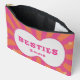 Keep your beauty essentials organized with this chic and colorful cosmetic pouch. Featuring the signature "BESTIES" typography and a fun pink and orange retro aesthetic, this bag is a must-have for travel or everyday use. Personalize it with a name to create a special keepsake or a stylish bridesmaid gift that stands out on any vanity.