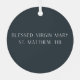In the painting, the Blessed Mother bows her head in serene humility while St. Joseph receives her hand in reverence—a covenant sealed by faith and obedience. The gold frame surrounding the artwork adds a timeless elegance, while the reverse side bears a soft blue background with the inscription: “The Blessed Virgin Mary, St. Matthew 1:18.”