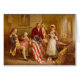 Betsy Ross showing Major Ross and Robert Morris how she cut the stars for the American flag; George Washington sits in a chair on the left. 1 photomechanical print : halftone, colour (postcard made from painting). Postcard published by The Foundation Press, Inc., 1932. Reproduction of oil painting from series: The Pageant of a Nation.