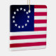 The Betsy Ross flag is a reconstructed early design for the flag of the United States, which is conformant to the Flag Act of 1777 and has red stripes outermost and stars arranged in a circle. These details elaborate on the 1777 act, passed early in the American Revolutionary War, which specified 13 alternating red and white horizontal stripes and 13 white stars in a blue canton. Its name stems from the story, once widely believed, that shortly after the 1777 act, upholsterer and flag maker Betsy Ross produced a flag of this design.