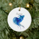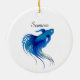 A watercolor painting of a lovely male blue betta splendens fish adorns this customisable ornament!