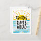 Encourage someone going through rough times with this cheery hand-lettering style typography design featuring the message in black, brush script letters, "Better Days Ahead" surrounded by watercolor sun with rays and stars and light blue ocean waves.