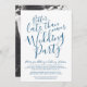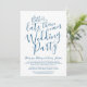 Typographic script modern simple navy blue text on a white background design post-wedding invitation reads better late than never wedding party. Simple modern contemporary design, personalise with your own wedding after-party belated wedding venue, brides and grooms names and reply details on the front and your favourite wedding photo from your wedding day on the reverse. Matching wedding products and other colour options available in the store. © Design by Sarah Trett for www.mylittleedenweddings.com